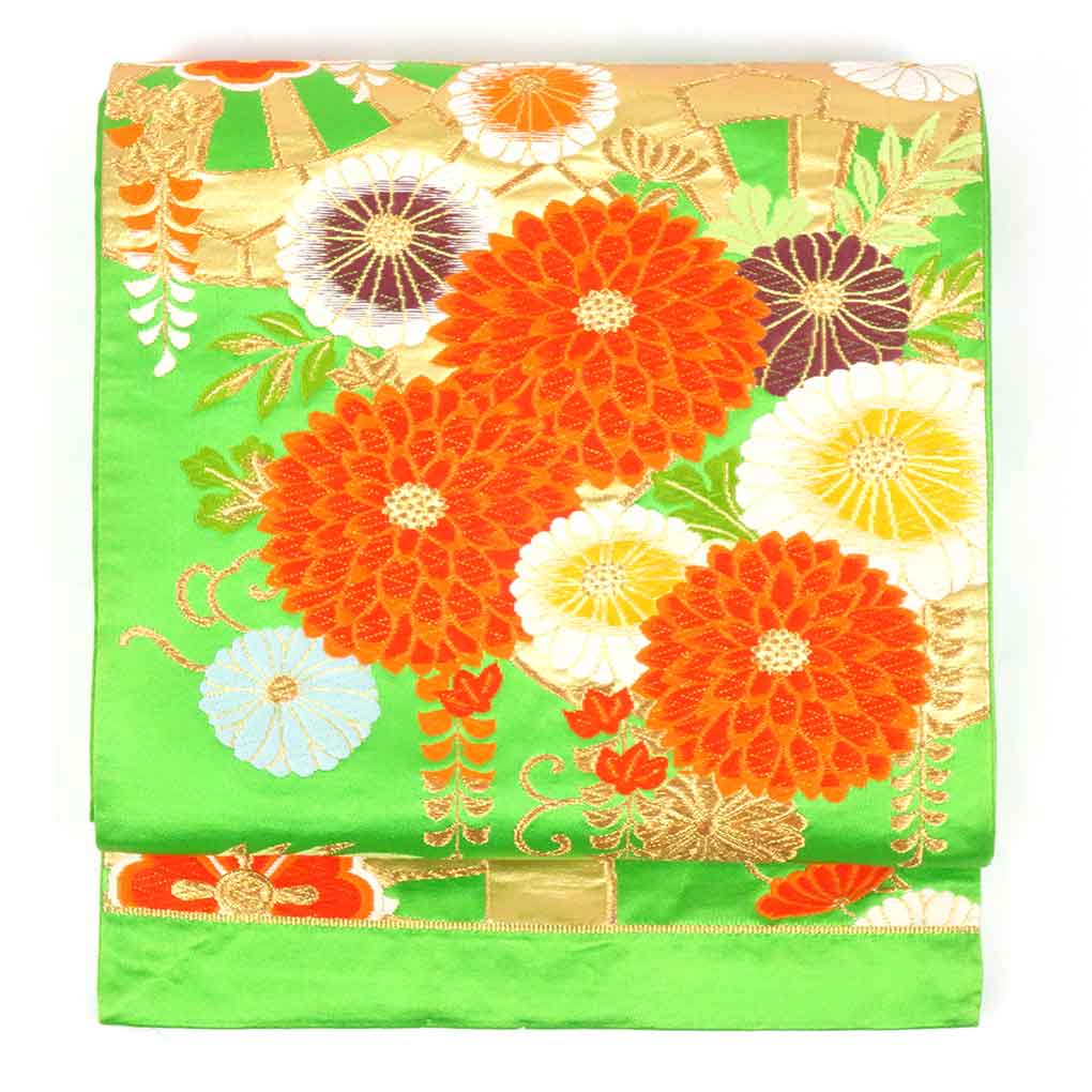 【SS30%OFF】【中古】袋帯 リサイクル着物 幅30cm 長さ420cm 正絹(シルク) レディース 秋冬春用 緑地 フリーサイズ 美品 リユース