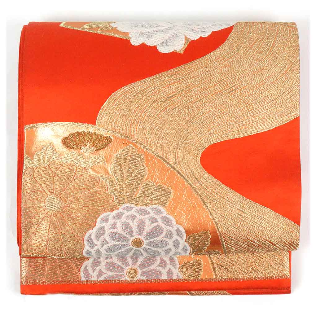 【SS30%OFF】【中古】袋帯 リサイクル着物 幅30cm 長さ424cm 正絹(シルク) レディース 秋冬春用 オレンジ地 フリーサイズ 美品 リユース
