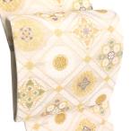 袋帯 正絹 西陣織 ふくろ帯 六通柄 仕立代込 白茶 花菱格子