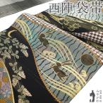 袋帯 未使用 正絹 京都 西陣 金糸 紗張り モール織 黒 十五夜 お月見 うさぎ 兎 満月 波 カジュアル 新古品 仕立て上が みやがわ sb54315