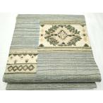 平和屋着物▽太鼓柄袋帯 スリーシーズン帯 春 夏 秋 紬地 霞文 正絹 逸品 DAAZ0429ps