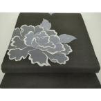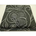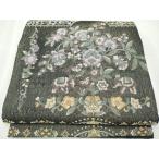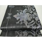 平和屋着物▽六通柄袋帯 スリーシーズン帯 春 夏 秋 更紗花文 黒地 銀糸 正絹 逸品 DAAZ0336ps