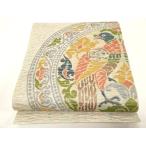 平和屋着物▽六通柄袋帯 スリーシーズン 春夏秋 紬地 更紗鳥文 金銀糸 正絹 逸品 CABD4266dy