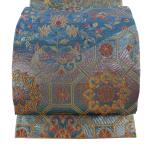 袋帯 正絹 西陣織 未仕立て フォーマル 礼装 河合美術織物 唐織 双縞七宝花菱文 薄青