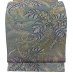 袋帯 逸品 佐波理綴 藤舞美友 藤 金銀糸 箔 水色 六通 正絹 中古