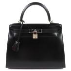 極美品△HERMES エルメス ケリー 28 外縫い ボックスカーフ シルバー金具 ハンドバッグ ブラック U刻印 箱・保存袋付き 仏製 レディース