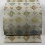 美品 袋名古屋帯 逸品 川島織物 落款あり 菱 幾何学 ベージュ 正絹 中古