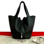 極 美品 袋付 C 刻印 HERMES エルメス ピコタンロック MM トリヨンクレマンス レザー ハンドバッグ トートバッグ ブラック 622-2
