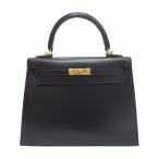 【栄】エルメス ケリー 25 K刻印 2025年 ボックスカーフ 外縫い ブラック ゴールド金具 レディース 女性 箱 保存袋