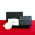 極 美品 箱 袋付き シール有 ランダム番台 CHANEL シャネル マトラッセ ココマーク ラムスキン レザー 三つ折り財布 メタルブラック 95841