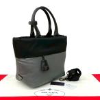 極 美品 袋付き PRADA プラダ 三角ロゴ 金具 レザー 本革 ナイロン 2way ハンドバッグ ショルダーバッグ ブラック グレー 75488