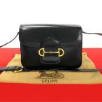極 美品 袋付き CELINE セリーヌ ヴィンテージ ホースビット 金具 レザー 本革 ショルダーバッグ ポシェット サコッシュ ブラック 54285