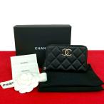未使用保管品 箱 袋付 シール有 CHANEL シャネル マトラッセ ココマーク ラインストーン ラムスキン コインケース 財布 ブラック 21588