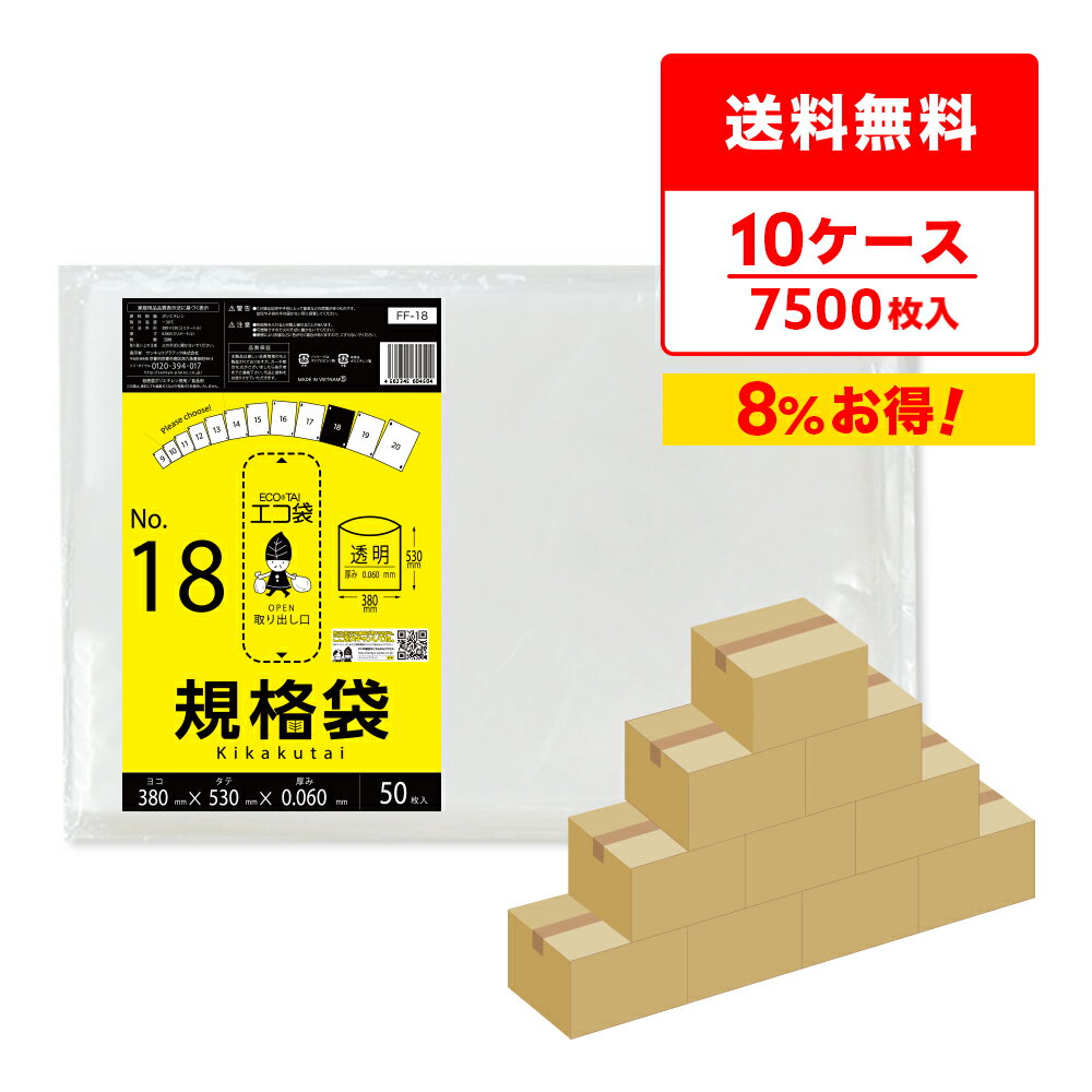 【まとめて10ケース】FF-18-10 規格袋 18号 0.060mm厚 透明 50枚x15冊x10箱 極厚タイプ/ポリ袋 袋 保存袋 食品袋 平袋 食品用 検食 厨房 保育園 食品検査適合 RoHS指定 サンキョウプラテック まとめ買い 送料無料 即納