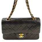 CHANEL マトラッセ ダブルフラップ Wチェーン ショルダーバッグ 黒 管理番号:10906