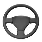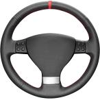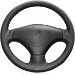 【並行輸入品】手裁縫ブラック本革ステアリングホイールカバー用プジョー206 207シトロエンc2 Loncky Custom Fit Hand