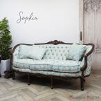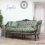 3人掛け ソファ 三人用 アンティーク ソファー エレガント 長椅子 プリンセス ロココ ヴィンテージ レトロ ビンテージ 姫系 グリーンダマスク 1008-3-5F102B