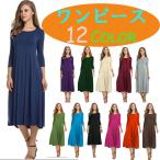 ワンピース レディース ロング丈 マキシ丈 普段着 Aライン ゆったり 春 夏 七分袖 部屋着