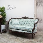 2人掛け ソファ 二人用 アンティーク ソファー エレガント 長椅子 プリンセス ロココ ヴィンテージ レトロ ビンテージ 姫系 ブルーダマスク 1008-2-5F66B