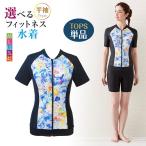 フィットネス水着 レディース 上 トップス インナー付 選べる 花柄 半袖 大きいサイズ ジム ヨガ プール 水中ウォーキング 30代 40代 50代