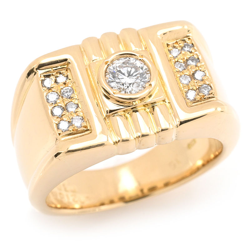 角印台 ダイヤモンド リング 20号 鑑別書 イエローゴールド メンズ 逸品質屋 丸高 尼崎市 K18 Diamond Ring