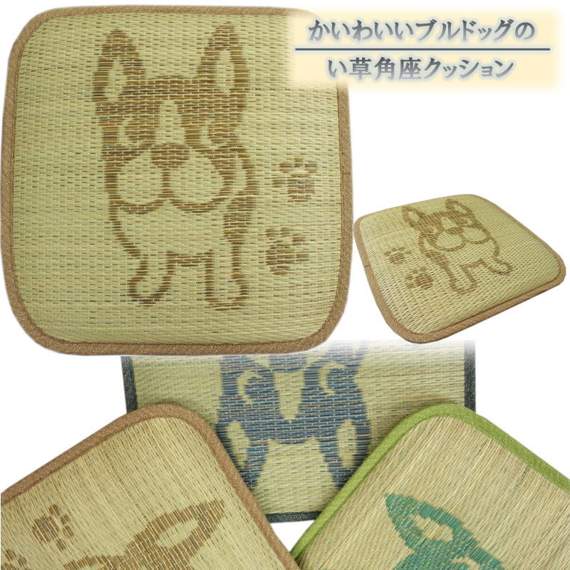 40x40cm い草角座クッション「ブルドッグ」ブルー色 10枚セット【夏用クッション】