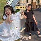 子供 ワンピース 女の子 無地 ロング丈 可愛い 夏服 フリル ワンピース 韓国 ビーチウエア 発表会 結婚式 ジュニア 子ども服 カジュアル 小学生 海 旅行 120-165