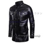 レザーコート メンズ 革ジャン ロング丈 無地 お洒落 センターベンツ カッコイイ カジュアル アウター トップス 紳士服 レザージャケット 春 秋 冬 立ち襟