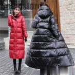 ダウンコート レディース ロング ダウンジャケット エナメル フード スタンドカラー aライン 着痩せ 撥水 大きいサイズあり ブラック 無地
