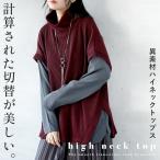 ニットトップス ハイネック 計算された切替が美しいハイネック異素材トップス ボルドー 秋 冬 秋冬 ニットソー ニット OTONA 40代 50代 60代