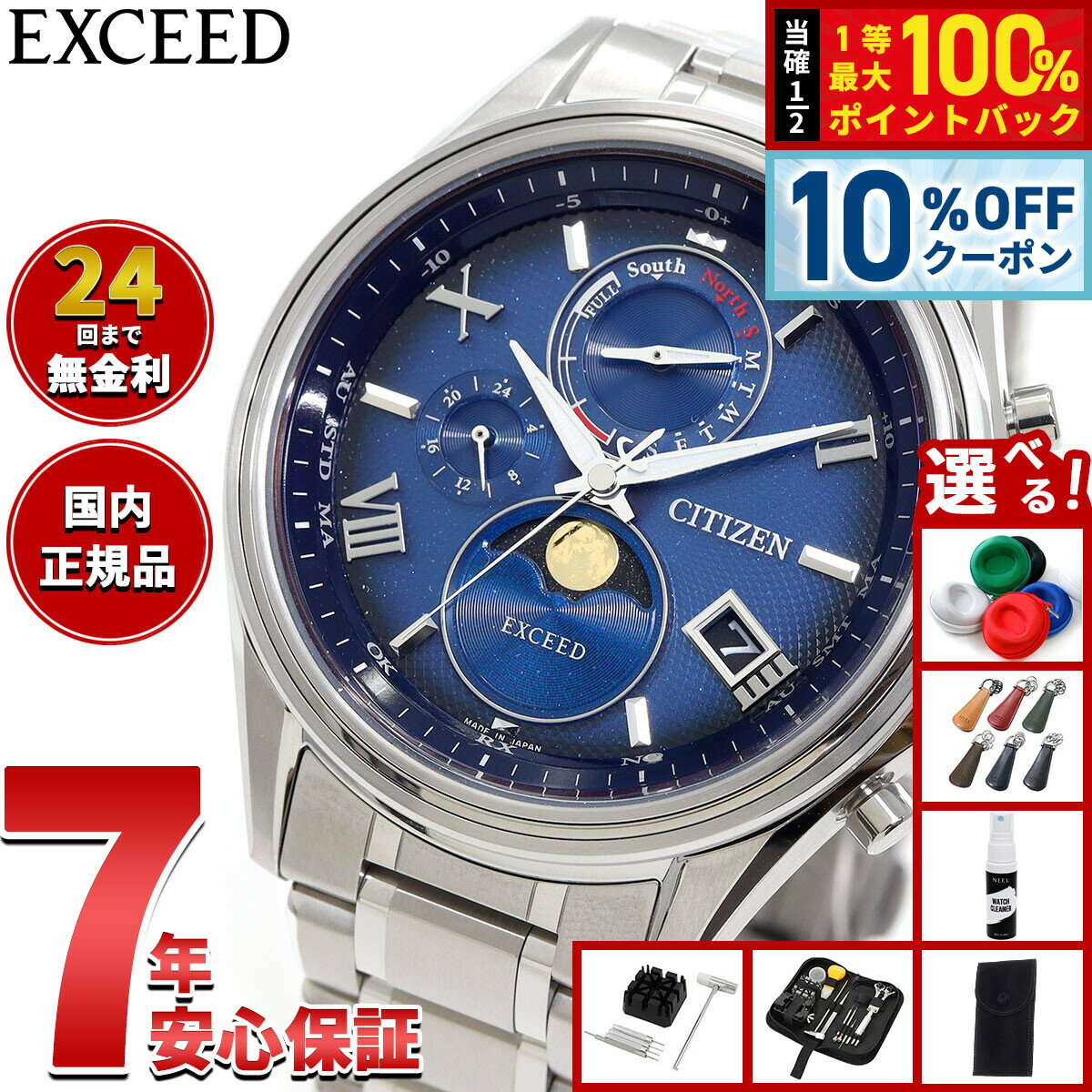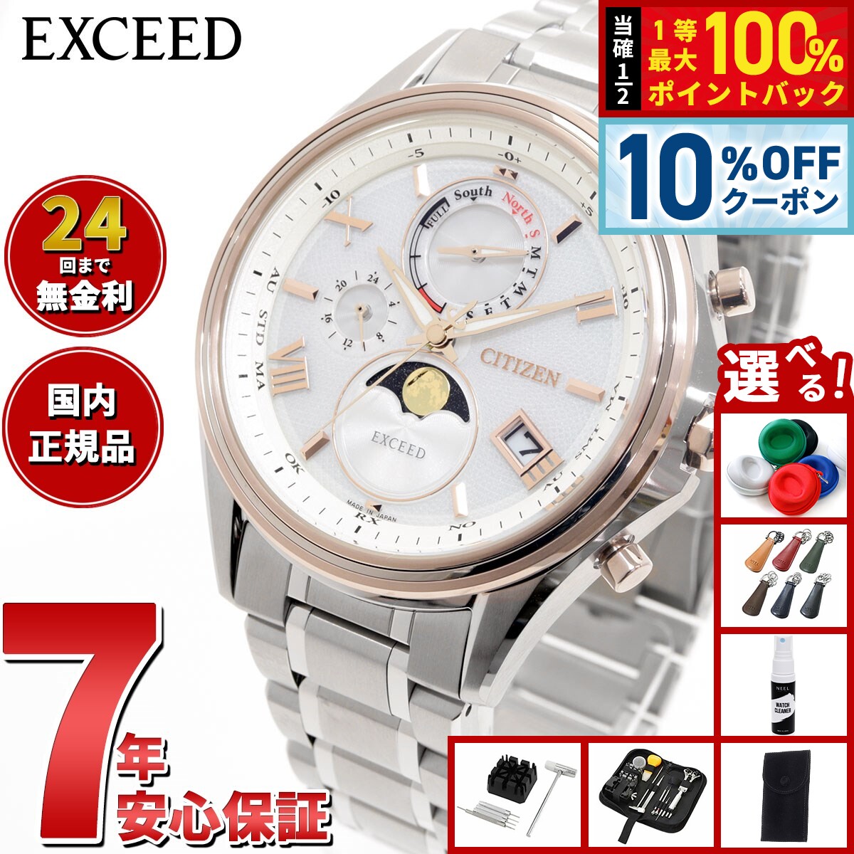 【10%OFFクーポンは本日9:59まで】【選べるノベルティー付き】シチズン エクシード CITIZEN EXCEED エコドライブ 電波時計 腕時計 ペアモデル メンズ ダイレクトフライト ムーンフェイズ BY1020-61E 月齢自動計算機能 ルナプログラム 搭載