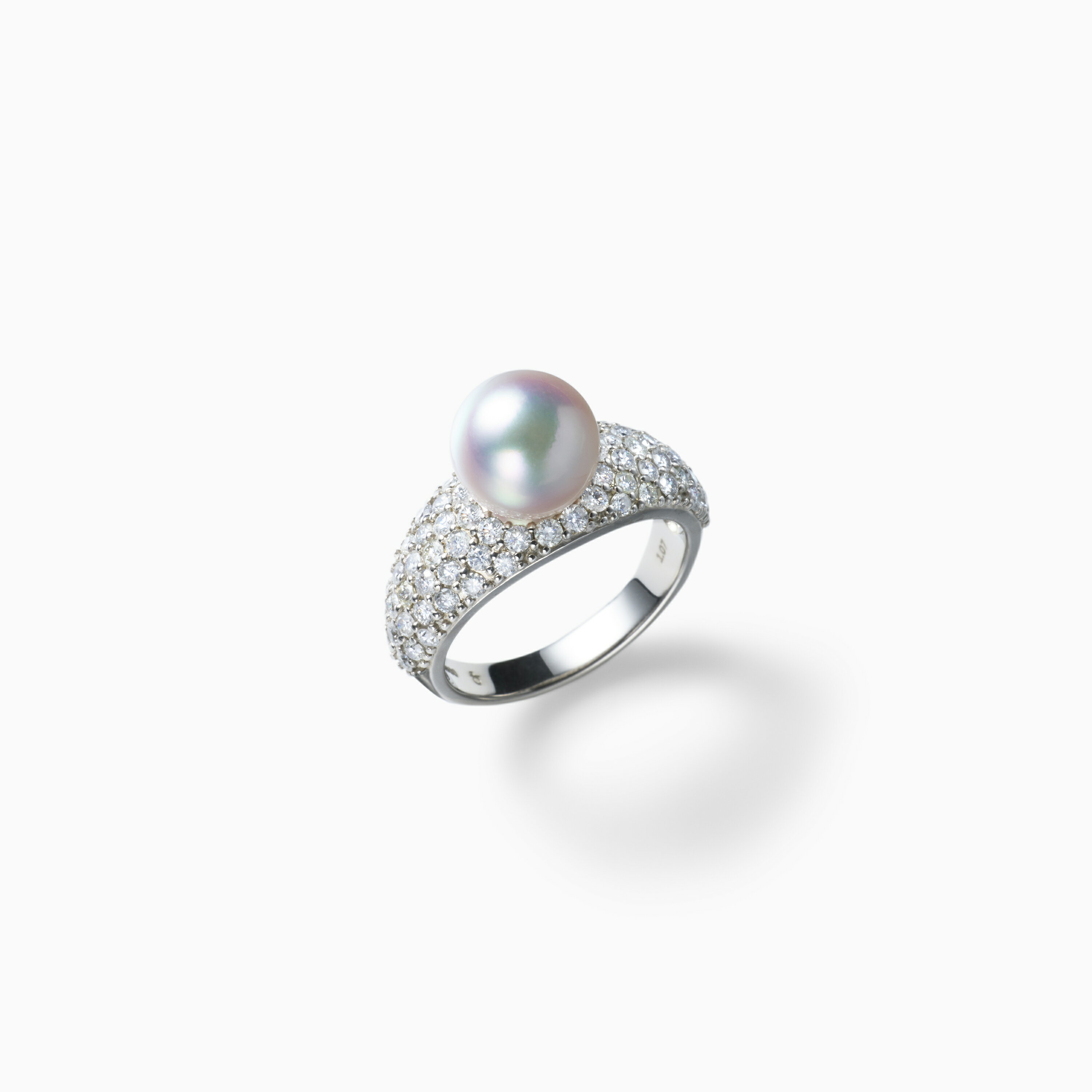 《真珠大卸からの直販》■テリ評価100点満点・計算しつくされた理想の最高級パヴェリング■越物花珠真珠8.5mmUP PT900製リング[純白ホワイト系グリーンピンク] 8.5mmUP【送料無料】