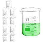50ml ビーカー 10個セット ガラスビーカー 計量カップ 測定カップ 標準スケールライン付き 実験用品 実験器具 耐熱ガラス 教育実験用 耐酸 耐アルカリ クリア ホ