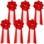 リボン記章 6個セット 赤 胸章 徽章 式典 イベント パーティ 来賓 ゲスト 行事 入学式 卒業式 セレモニー(中)