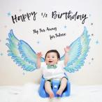 ウォールステッカー ハーフバースデー バースデー 誕生日 【ブルースカイエンジェル】 はがせる 壁 シール ステッカー 壁紙 飾りつけ 写真の背景 1歳 2歳 百日 男の子 女の子 子ども キッズ ベビー 数字 6か月 羽根 はね 天使 羽 英字 文字 箔押し