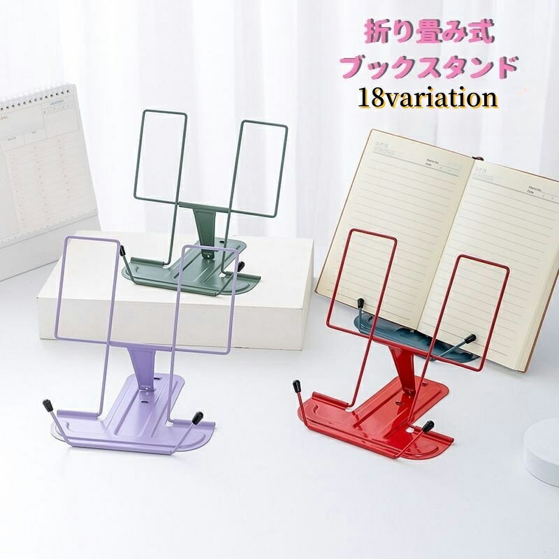 送料無料 ブックスタンド ブックストッパー 読書スタンド 文具 事務用品 本立て 折り畳み 譜面台 角度調整 楽譜 読書 教科書 学習 タブレット コンパクト カラバリ豊富 おしゃれ