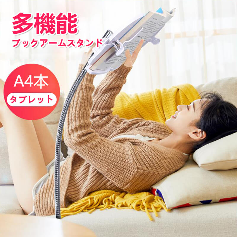 お買い物マラソン【P5倍】ベッド・机用ブックアーム 寝ながら読書 書見台 ブックスタンド 本置き 介護 寝たまま読書 読書スタンド 勉強 学習用スタンド タブレットアームスタンド 文庫本対応不可