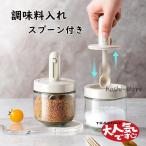調味料入れ 調味料ポット 調整可能スプーン付き 2個セット スパイスジャー 調味料ケース グラス 塩入れ 砂糖入れ 保存容器 湿気防止 使いやすい