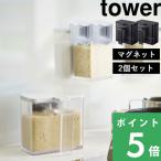 特典付 山崎実業 マグネット調味料ストッカー タワー 2個セット tower 公式 調味料ケース 磁石 調味料入れ 塩 コショウ 4817 4818 白 黒