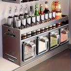 キッチンスパイスラック 壁掛け式 穴あけ不要 アルミ製 調味料セット 吊り棚&スパイスジャー付き 多機能収納 エレガント 実用的 清潔簡単