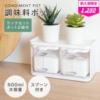 調味料ポット 調味料入れ 2個 セット ラック付き 調味料ケース 500ml 大容量 密閉 塩 砂糖入れ スパイスボトル スプーン付き 乾物 調味料 保存容器 キッチン収納
