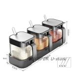 3個セット スパイス入れ スプーン付き キッチンポット 調味料ポット 調味料入れ ガラス製 塩入れ 砂糖 密閉 保存容器 調味料容器 片手開閉 使いや