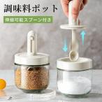 調味料入れ 調味料ポット 調整可能スプーン付き 2個セット スパイスジャー 調味料ケース グラス 塩入れ 砂糖入れ 保存容器 キャニスター 湿気防止