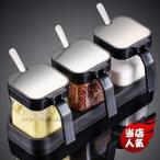 調味料入れ 調味料容器 調味料ケース おしゃれ ガラス 砂糖 塩 キャンプ 密閉 トランスペアレント セット 3個 キッチン用品 防湿防塵 お手入れ簡単