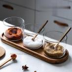 2023新品 調味料入れ 調味料容器 調味料ケース おしゃれ ガラス 砂糖 塩 キャンプ 密閉 トランスペアレント セット 3個 防湿防塵 お手入れ簡単 キッチン用品
