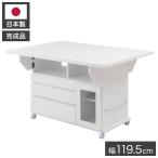 日本製 完成品 大川家具 Butter 幅119.5 高さ70 テーブル バタフライカウンター ホワイト キッチン収納 おしゃれ 白 リビング キャスター付き 国産 代引不可