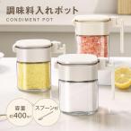 調味料ポット 調味料入れ スプーン付き 400ml容量 調味料 ストッカー ラック 塩 砂糖入れ 湿気防止 ワンタッチで開く スパイスボトル passo-tml03