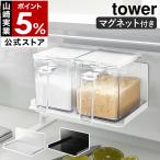 特典付 山崎実業 マグネット調味料ストッカー タワー 2個セット tower 公式 調味料ケース 磁石 調味料入れ 塩 コショウ 4817 4818 白 黒