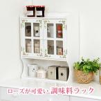 スパイスラック(調味料ラック/スパイスボックス) 幅63cm 扉/可動棚付き ローズ柄 ホワイト(白) 代引不可