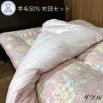 布団セット ダブル 2点 掛け布団 固綿入り 敷布団 日本製 羊毛混 組布団 ダブルロング 掛布団 敷き布団 寝具セット 国産 ふとん 安い 布団 セット